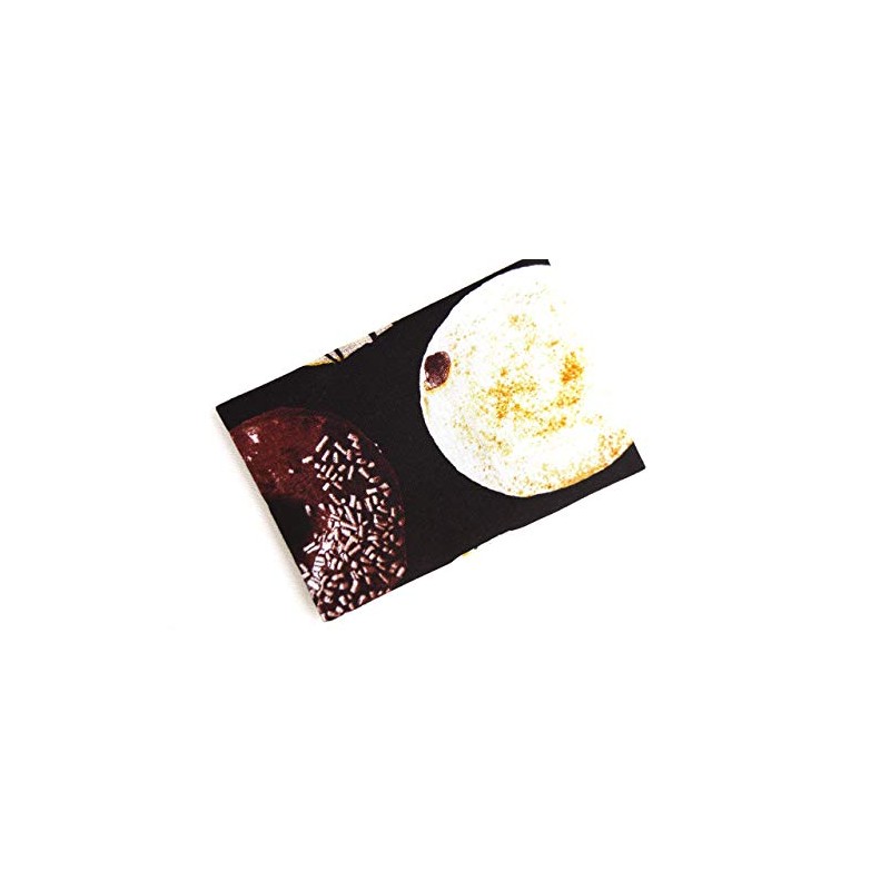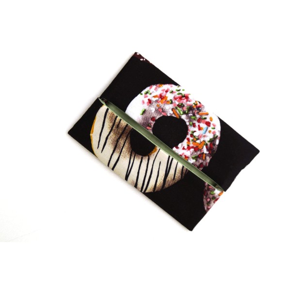 This travel size tissue holder will hold your tissues in your purse, car, anywhere. It features a fun donut print. Measures 3.5 X 5 inches. A great little gift idea for the doughnut lover in your life or a nice accessory for you. This will hold a whole Kleenex travel size tissue pack best if you remove the packaging. The exact donuts on your tissue holder will vary depending on where it was cut in the repeat of the fabric pattern.