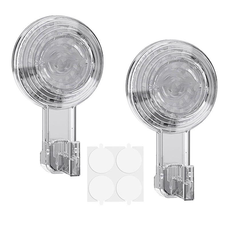 - Strong Suction and Heavy Duty: These 2 transparent heavy duty suction hooks, with a stylish and waterproof design, come equipped with 4 pieces of 4cm adhesive pads, ensuring a secure hold up to 5KG