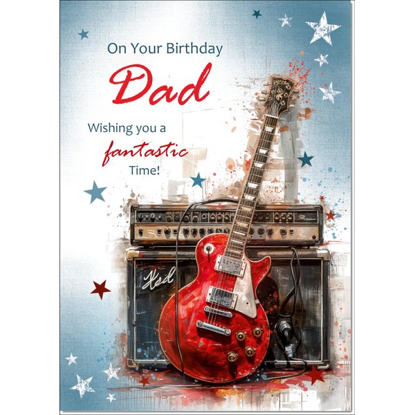 doodlecards Dad Birthday Card Guitar Medium Size with Plain Envelope