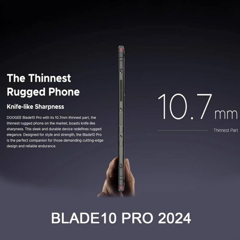 - 10.7 mm ultra-thin outdoor mobile phone & IP68/IP69K & MIL-STD-810: DOOGEE Blade 10 Pro outdoor mobile phone without contract is not only waterproof according to IP68/IP69K and shockproof according to MIL-STD-810H, but also withstands drops from 1.8 metres height without damage and survives 30 minutes long Easily depths of up to 1.5 metres. In addition, this construction site mobile phone is extremely thin and light with a thickness of only 10.7 mm and a weight of only 240 g