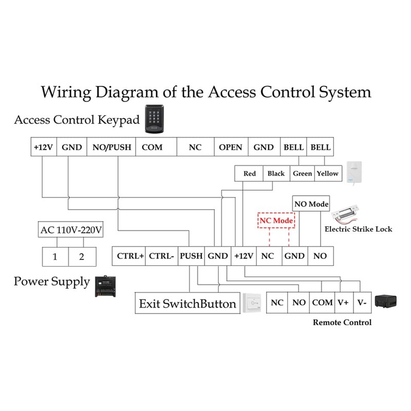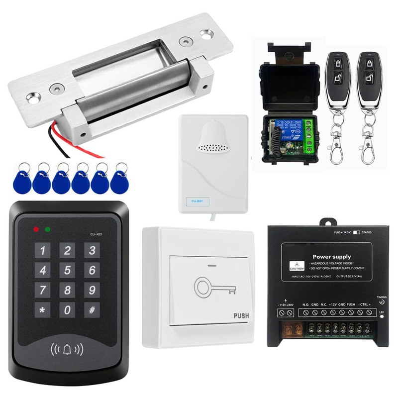 Door Access Control System RFID Keypad Electric Strike Lock Kit with Exit Button Doorbell Chime Remote Control
