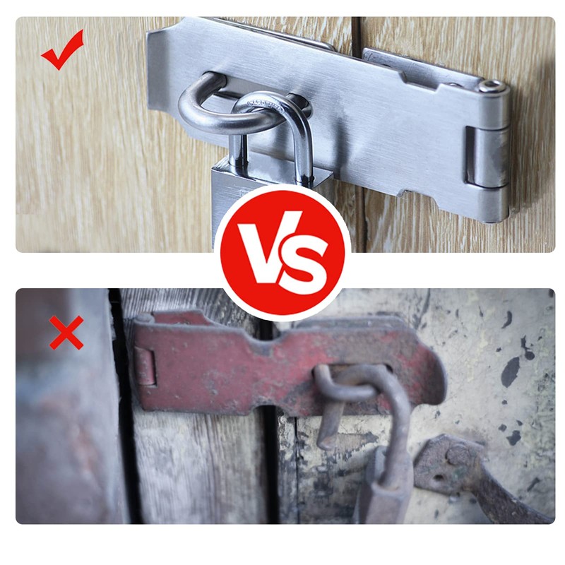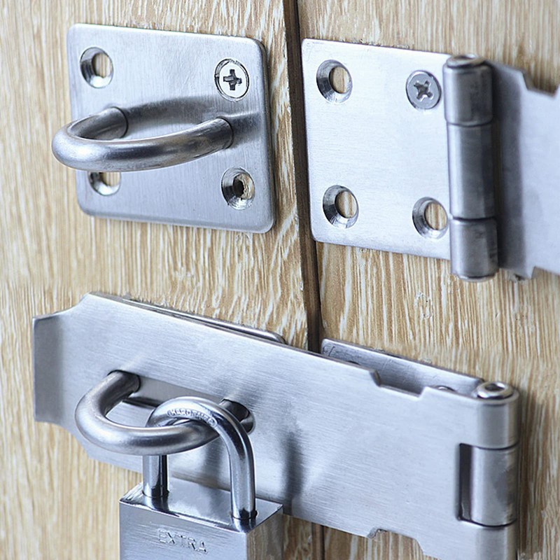 - Wide applications: door lock hasp with door lock and screws. Ideal for a variety of doors, cabinets, windows, sheds, drawers, storage containers, pet gates, tool boxes and much more.