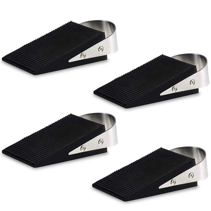 Door Stopper Wedge - ASelected 4 Pcs Heavy Duty Metal Rubber Doorstops Non-Slip Door Wedge Keeps Door Securely Open for Home Office (Black)