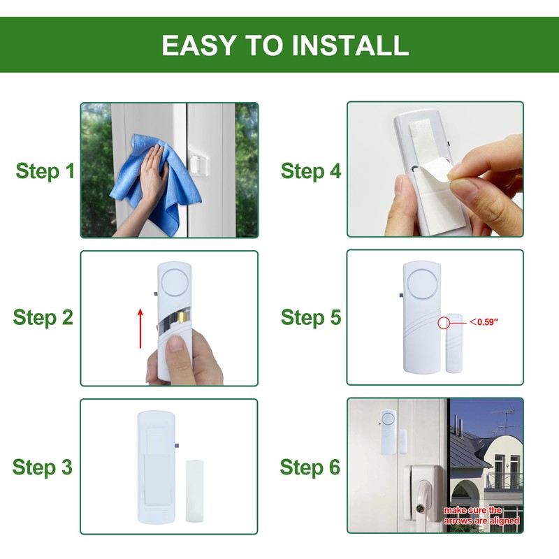 - ✅【High quality】Super suitability and stability. 100% New and high quality. Super environmentally suitable, stable, dust proof window door alarms. This cost-effective solution will keep you and your family safe.
