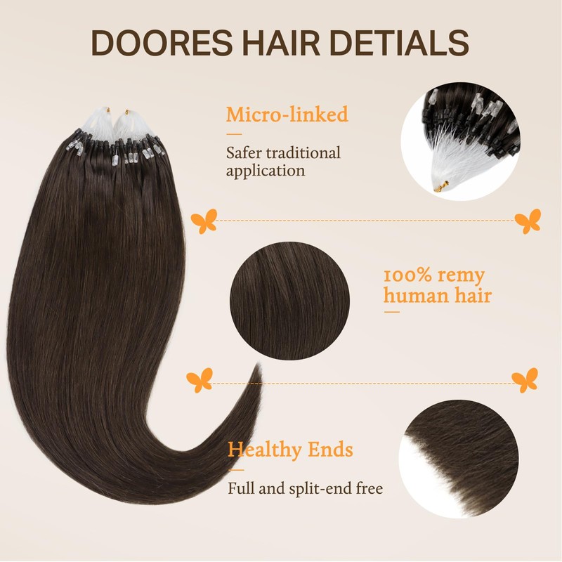 DOORES Micro Links Real Hair Extensions, Light Dark Brown, 55 cm, 50 g/50s, Micro Loop Hair Extensions Real Hair