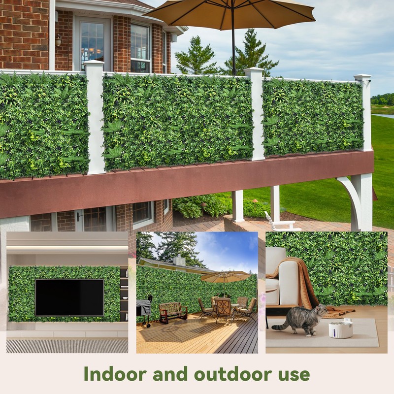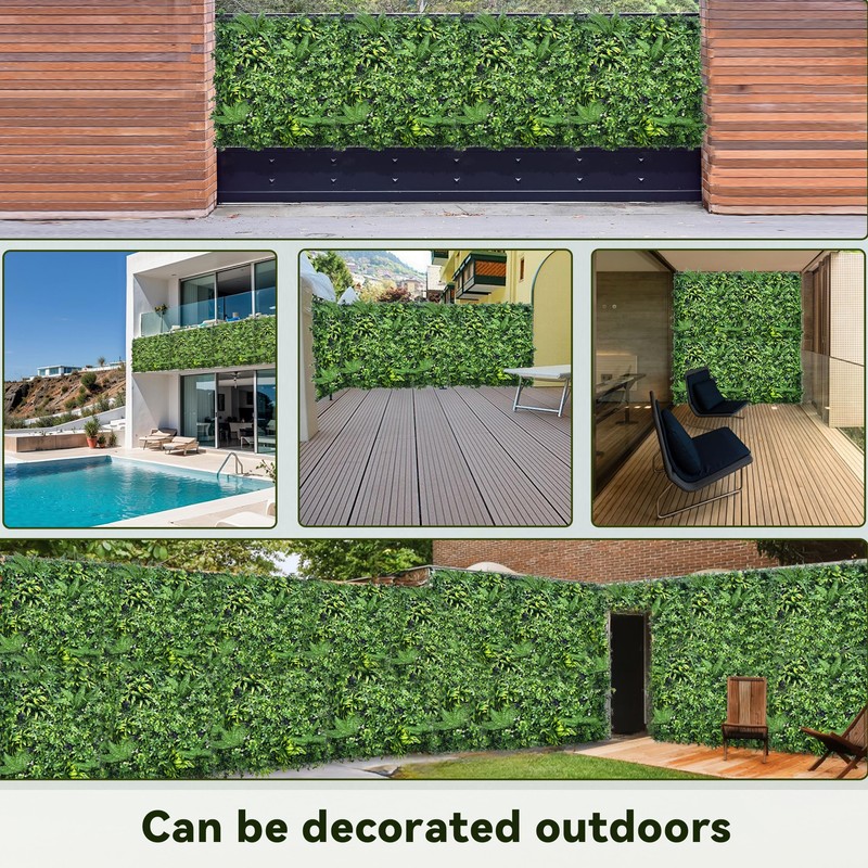 - 【Suitable for various occasions】:Synthetic green walls serve to create an engaging visual backdrop. Versatile for both indoor and outdoor applications, they are ideal for walls, roofs, fences, balcony dividers, railings, swimming pools, balconies, gardens, patios, scaffolding, as well as for special occasions like weddings, parties, or Christmas decor. They can also enhance the ambiance of bedrooms, living spaces, and office environments. This boxwood hedge plant is a multifaceted solution for your design needs.