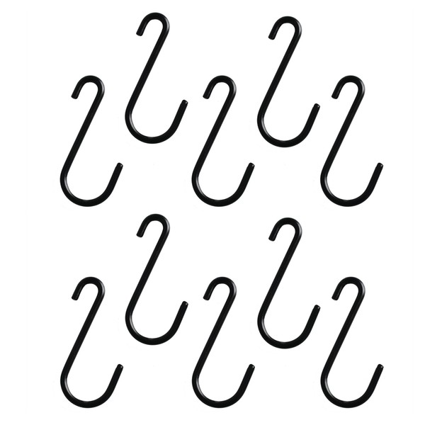 dophee 10Pcs 2.5" S Hooks for Hanging Plants, Black Heavy Duty Metal S Shaped Utility Hooks for Hanging Cups Jeans Clothes Bages Towels Purse Jewelry Pot Pans Baskets