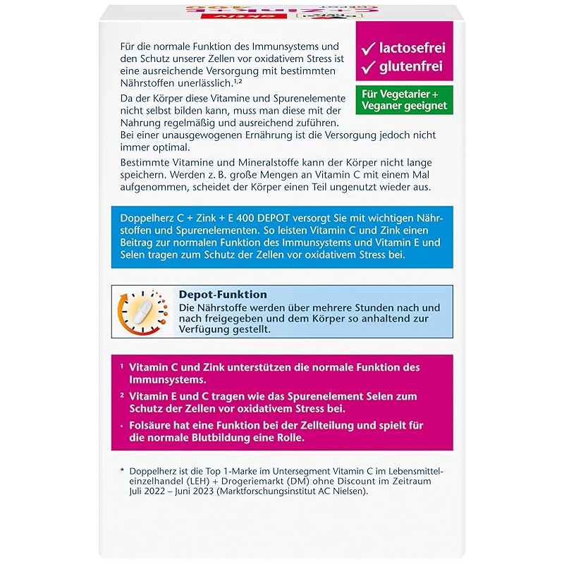 - The Doppelherz tablets support the normal function of the immune system with vitamin C and zinc