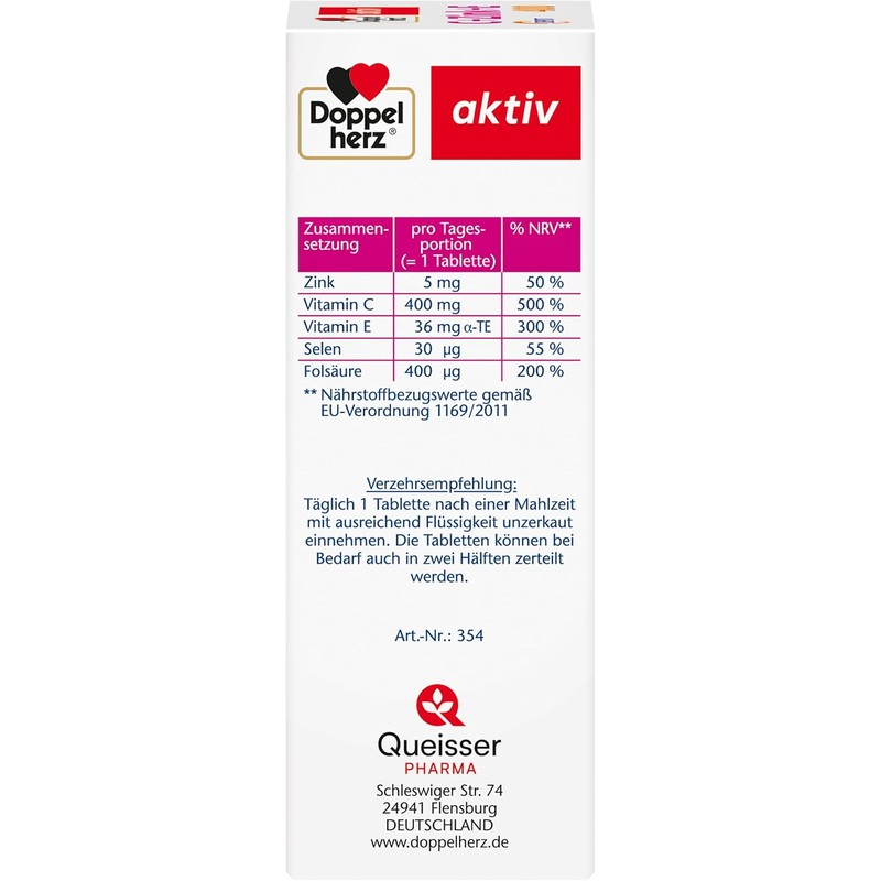 - One tablet from Doppelherz contains zinc, vitamin C, vitamin E, selenium and folic acid