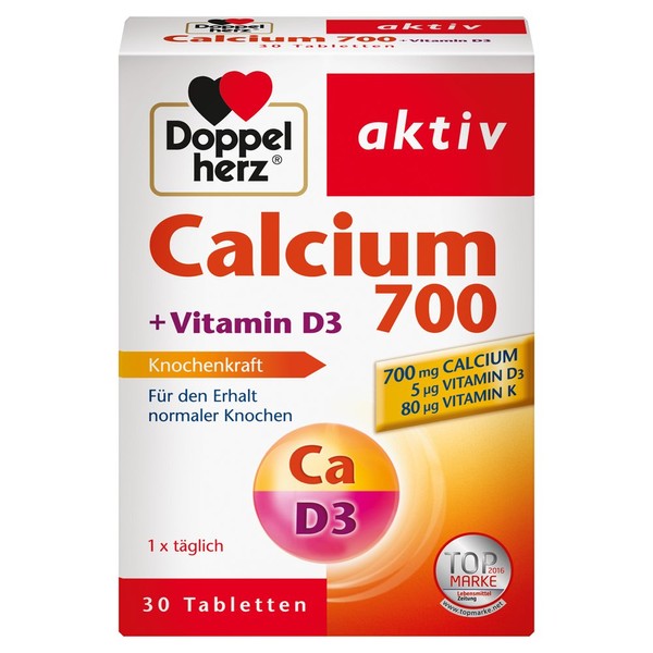 - Box contents: 1 pack of 30 tablets Doppelherz Calcium 700 / supplement with vitamin D3 for normal bone preservation / gluten and lactose free