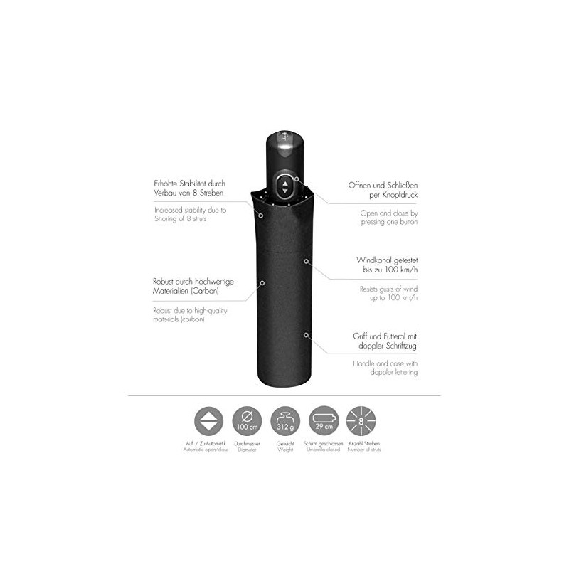 Doppler Carbon Steel Magic Uni Pocket Umbrella - Extremely Stable - Automatic Open/Close - Black, black, modern" or "elegant