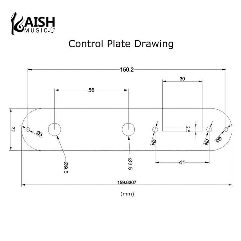 Dopro USA Specs 32mm Width Aluminum Anodized Tele Style Control Plate with 9.5mm Pot Holes for American/Mexican Telecaster, Silver