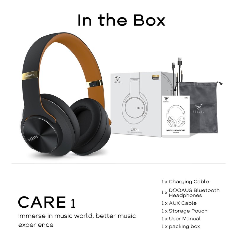 - 【 What You'll Get】You'll get 1 X DOQAUS Bluetooth Headphones Over Ear; 1 x AUX Cable; 1 x Charging Cable; 1 x Storage Pouch;1 x User Manual. For more information about DOQAUS Headphones Wireless Bluetooth, please feel free to contact customer service, all of the message will be processed within 24 hours