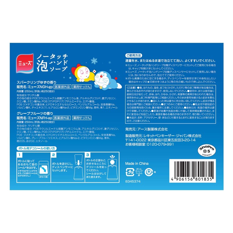 - The Muse no Touch automatically releases bubbles so you can wash it hygienically without touching the main unit. Doraemon Collaboration Design