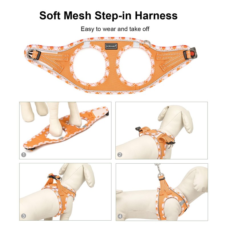 DORAMIO Step-in Dog Harness and Lead Set, Soft Mesh Reflective Vest Harness for Small Medium Dogs, Cats