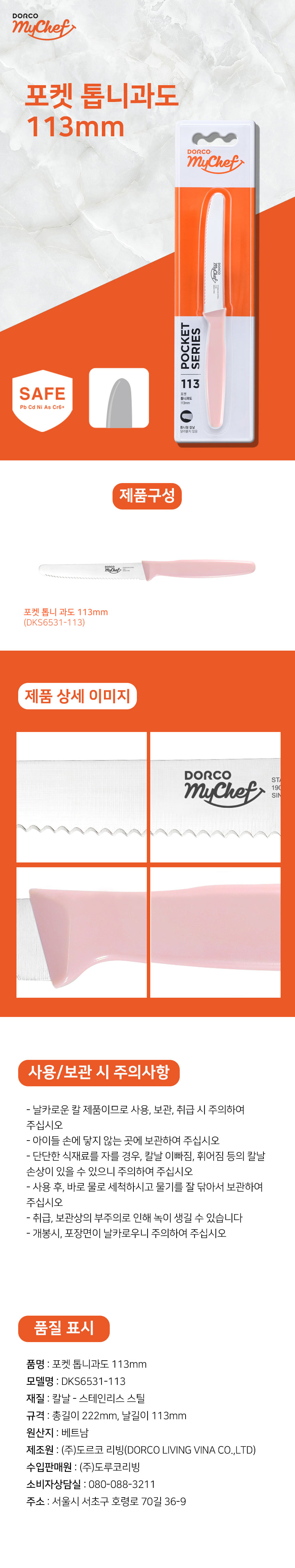 Dorco My Chef Pocket Tooth Excessive Tooth 113mm / 도루코 마이셰프 포켓 톱니과도 톱니 113mm