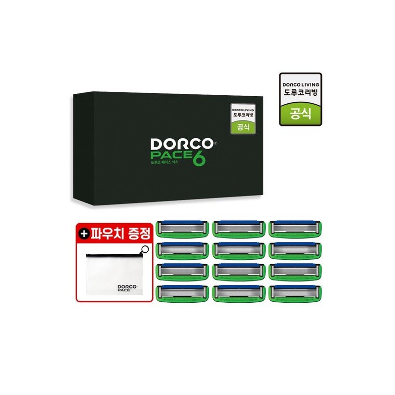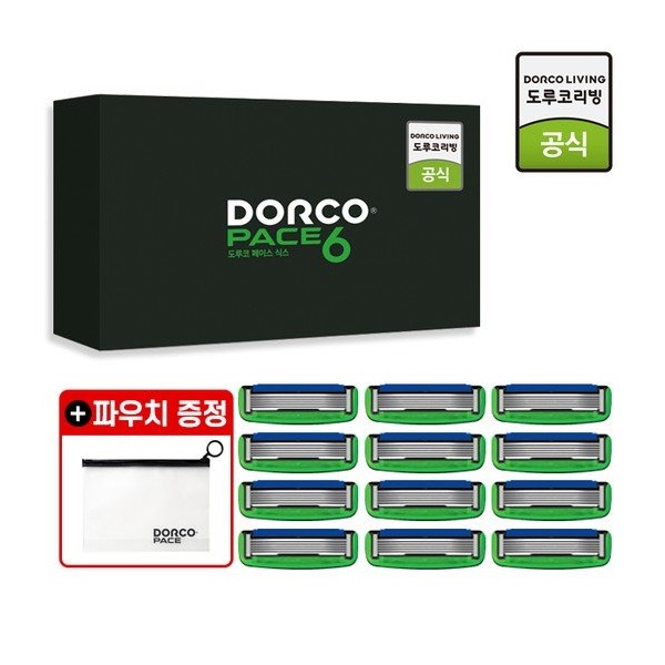 Dorco [Pouch gift] Face 6 6-blade 12-piece razor blade set compatible / 도루코 [파우치증정] 페이스6 6중날 12입 면도날세트호환가능