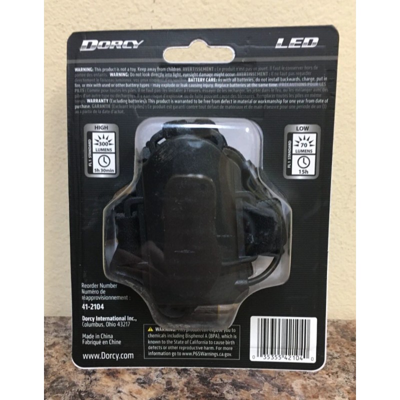- The Dorcy Motion 3AAA LED Headlamp can be used in regular on/off mode, or used in motion sensor mode with a simple wave of the hand. The motion sensor feature is perfect for when you have wet, oily, or gloved hands. This lightweight and compact headlamp features a washable adjustable head strap, a pivoting head for directional lighting, and a padded rear battery pack for comfort and minimal frontal weight. On high, the light features 300 lumens, a maximum beam distance of 76 meters, and a run time of 4 hours 30 minutes. On low, the light offers 65 lumens and a continuous run time of 12 hours.