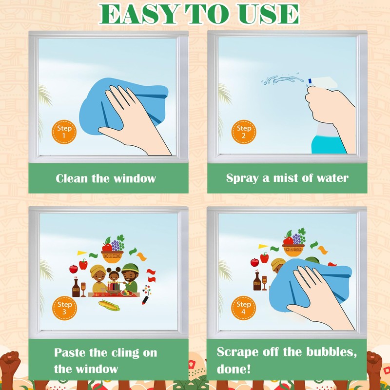 - EASY TO USE: Kwanzaa window stickers are thin static cling, no glue required, easy to use and peel, re-stickable. Keep the surface clean and moist before use.
