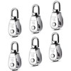 Dorhea 6 Pack 0.59" Single Pulley Block 304 Stainless Steel M15 Crane Swivel Hook Single Pulley Roller Smooth Wire Rope Cable Heavy Loading