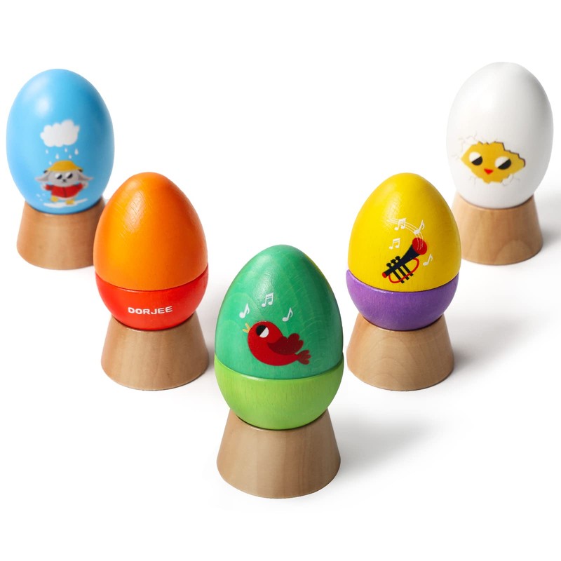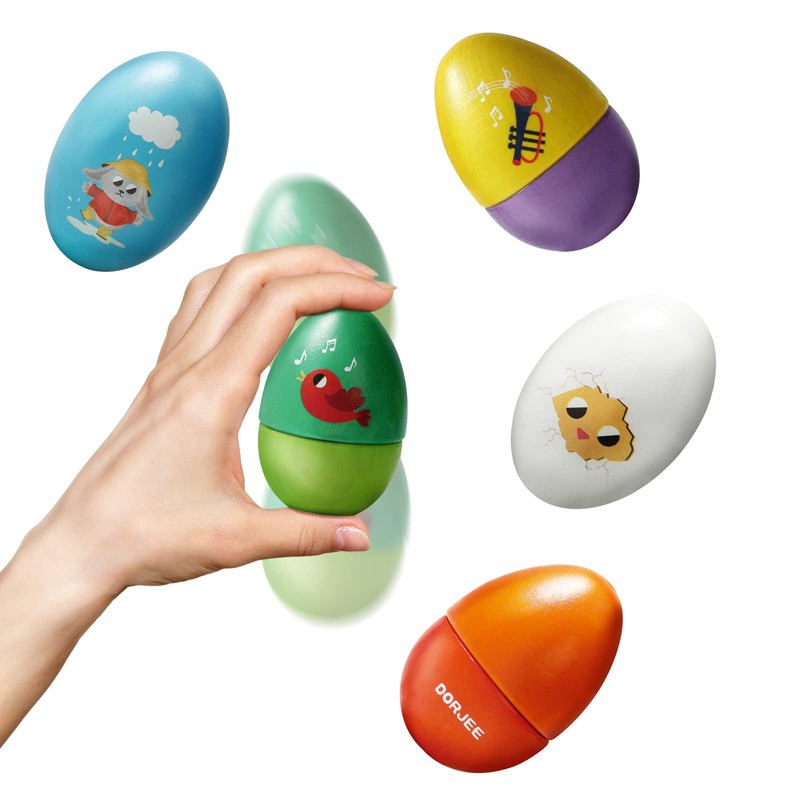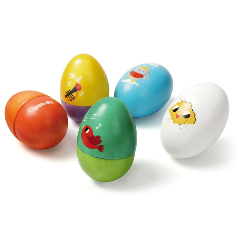Dorjee - D3.405-5 Wooden music eggs - Shake, rattle, roll and make music - wooden toy for children aged 12 months and older.