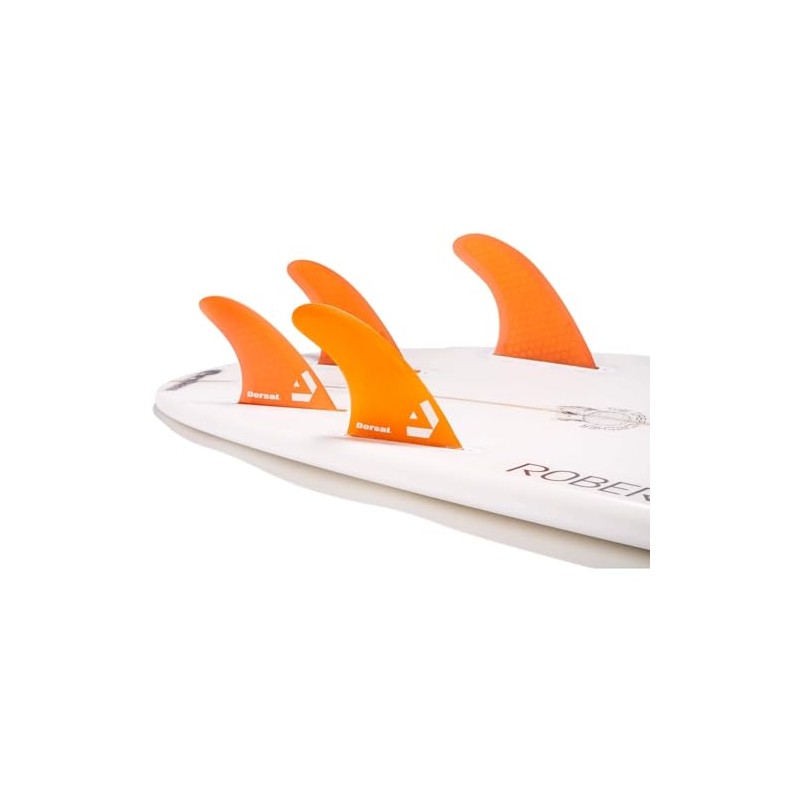 - Enhance your surfing experience with the DORSAL Surfboard Fins Quad 4 Set Future Compatible. Designed for the adventurous riders, these fins are a game-changer when it comes to conquering the waves.Crafted by experts at DORSAL, these orange quad fins are the epitome of innovation and quality. With cutting-edge technology and advanced construction, they offer unbeatable performance in the water. The unique hexcore construction ensures maximum flex