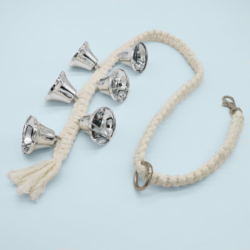 DORUI Dog Hanging Doorbells| 6 Dog Potty Training Bells| Adjustable Durable Braided Rope Door Bell for Dogs to Ring to Go Outside(Silver, Large)