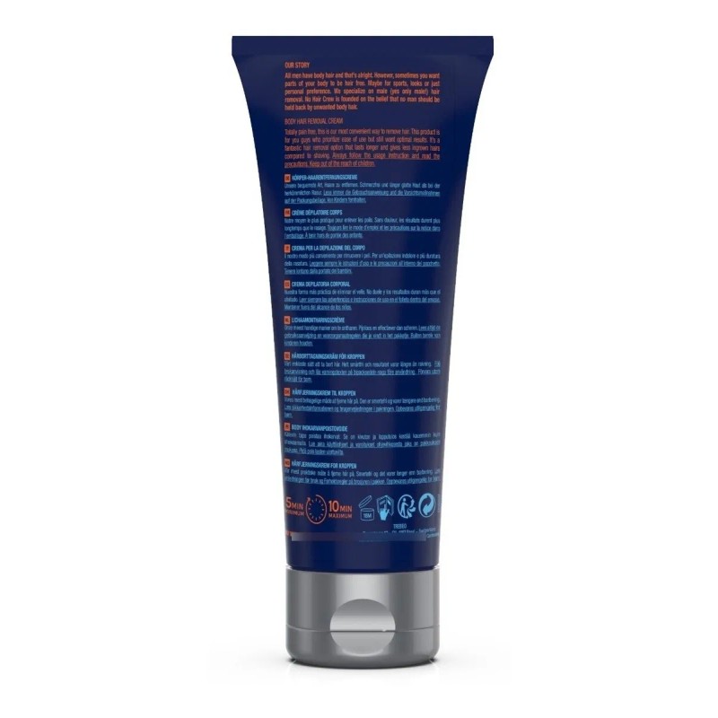 Especialmente formulada para hombres, esta crema depilatoria se adapta a las necesidades únicas del cuerpo masculino, cuidando de tus piernas, pecho, espalda, brazos y axilas. ¿La mejor parte? Es vegana, libre de crueldad y dermatológicamente probada para asegurar una experiencia indolora y sin cortes. 🌿❤️
