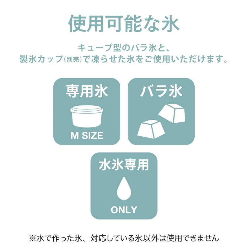 • You can sharpen ice cubes made from ice cube trays in your fridge and ice cubes made with a special ice cup M (sold separately)