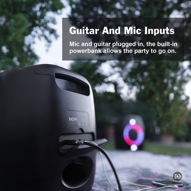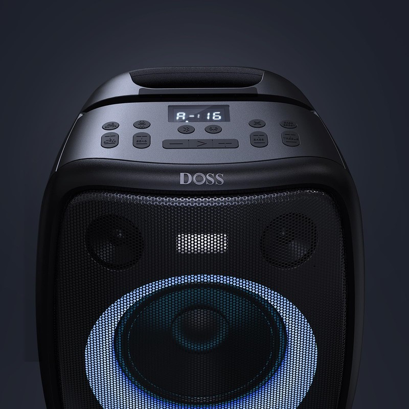 - IPX4 Splash Proof: With a portable handle and splash-proof design, take the party with you anywhere. To the beach, the poolside, the backyard parties, DOSS PartyBoom ensures the party never stops, rain or shine.