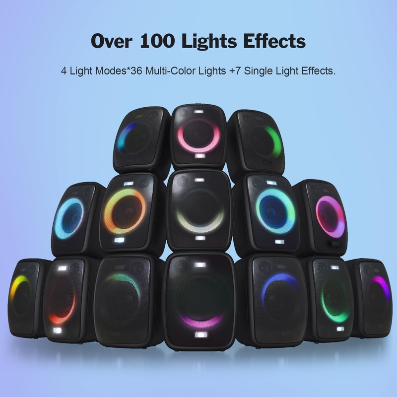 - Stunning Light Show: Waves of multi-color lights pulsing and flowing with the beats to astound your crowd. 6 Light modes make the wireless speaker fit both parties and everyday use.