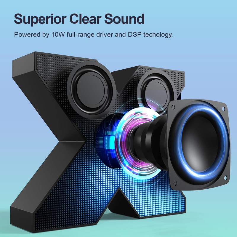 - 10W Rich Sound: Featuring a 2.25-inch full-range speaker, and dual passive radiators paired with cutting-edge DSP technology, this speaker produces crystal-clear sound in a sleek, compact design that fits seamlessly into any small space. Enjoy a superior audio experience without sacrificing style or portability.