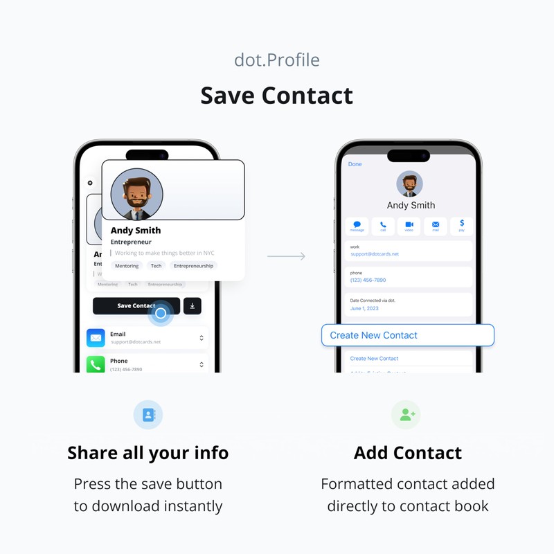 - Hassle-free sharing: Easily share your dot.Profile with unlimited free shares of your digital business card.