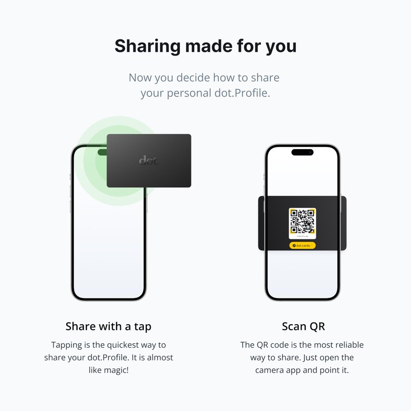 - No app or device requirement: Share your dot.Profile with anyone, as others don't need an app or a dot.device to receive your information.