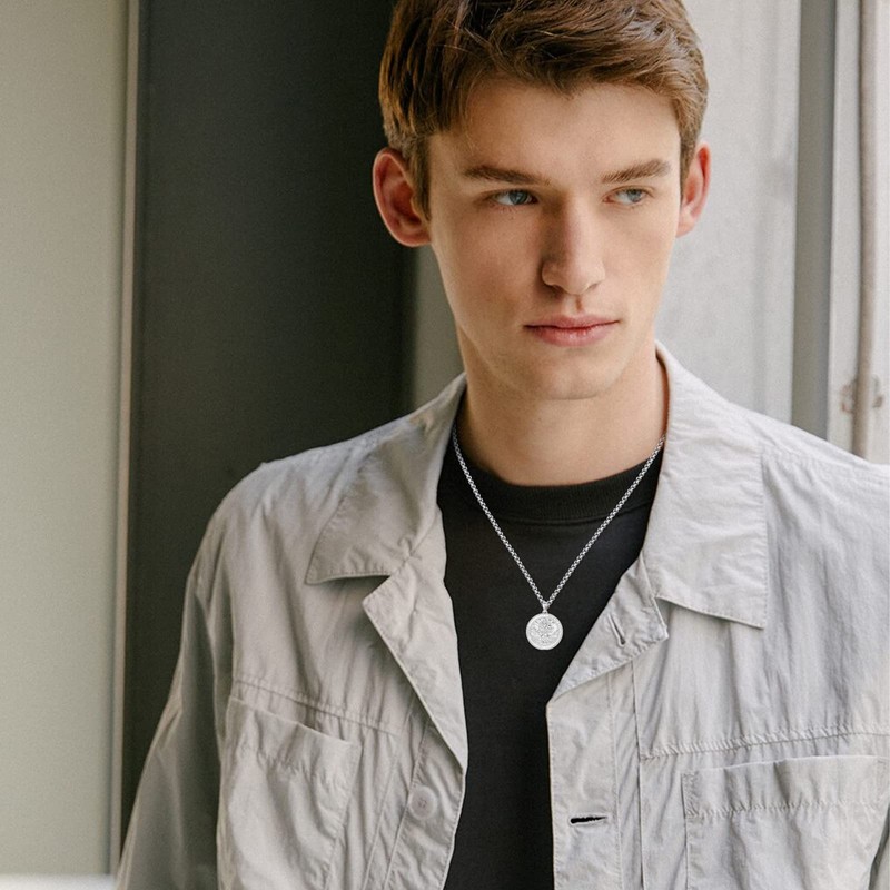 DOTBJ 925 Sterling Silver St. Christopher Necklace for Men Women with Stainless Steel Chain 24 Inch(White Gold)