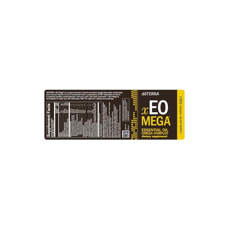 doTERRA xEO Mega Essential Oil Omega Complex is a unique formula of CPTG Certified Pure Therapeutic Grade essential oils and proprietary blend of marine and land-sourced omega fatty acids. Omega fatty acids help support healthy joint, cardiovascular, and brain health, support healthy immune function, and have been shown to help mediate healthy inflammatory responses in cells. A single daily dose of xEO Mega provides 1000 milligrams of marine lipids with 340 mg of EPA and 240 mg of DHA and a blend of plant-sourced essential fatty acids. xEO Mega also includes 800 IU of natural vitamin D, 60 IU of natural vitamin E, and 1 mg of pure astaxanthin, a powerful antioxidant carotenoid harvested from microalgae. The bioavailability of the xEO Mega formula is enhanced through a nanosomal lipid assimilation system.