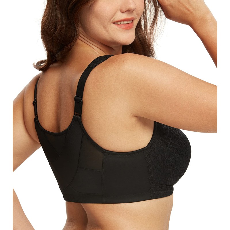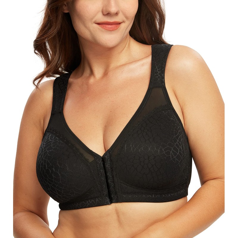 DotVol Front Closure Bra for Women Full Coverage Back Support Wirefree Posture Jacquard Adjustable Strap Comfort(Black,46D)