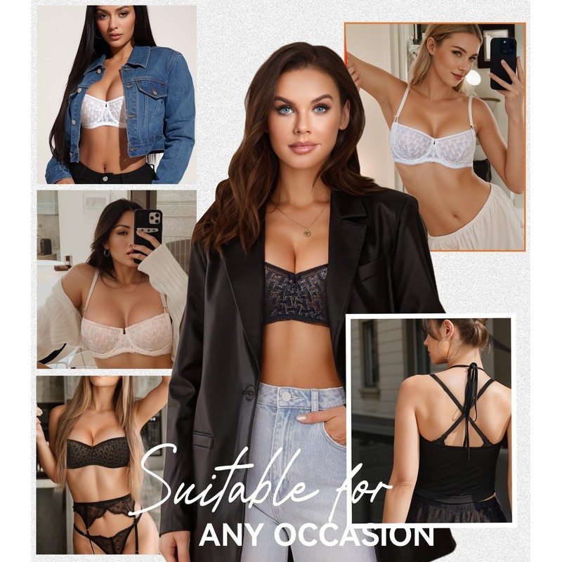 - Multiway Straps: Easily switch between a cross-back or traditional style, making this lace bra versatile, stylish, and perfect for all your tops.