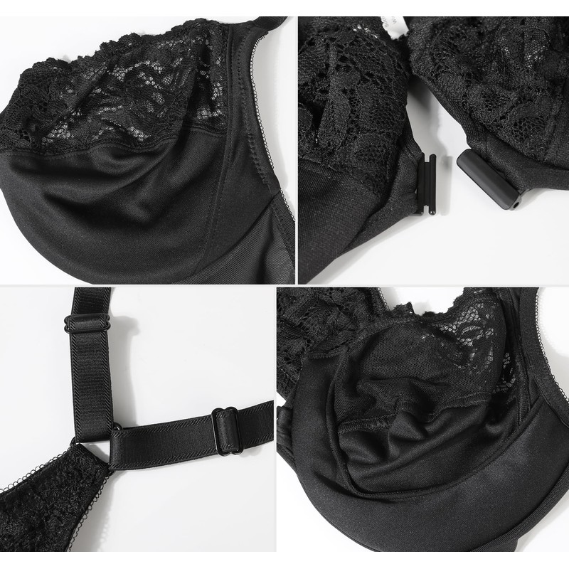 • Must Have: Plunge v neckline and embroidery Lace cup, this minimizer bra creates sexy cleavage, enhance your femininity. High quality flap on the side wings and the wide back help to smooth the side and back fat. Slim your look under clothes.