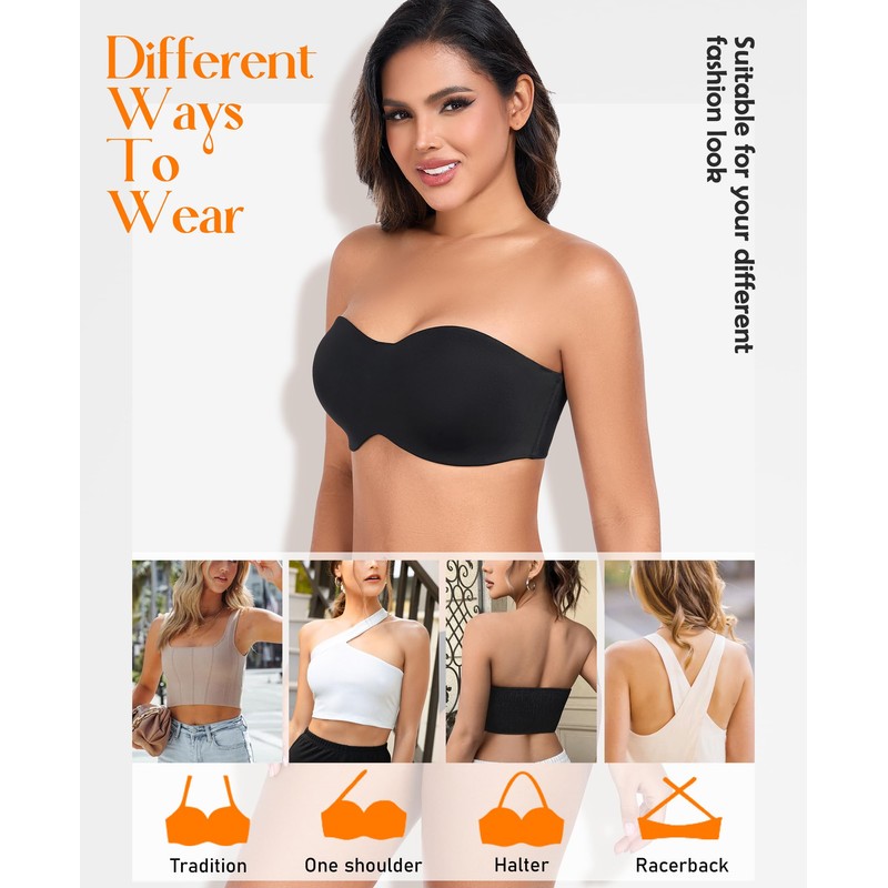 - Convertible Strapless: Paired with detachable straps, this strapless bra have different ways to wear: strapless, traditional, crisscross or halter. Fit your strapless evening dress, off shoulder dress or top for wedding, party, graduation prom etc
