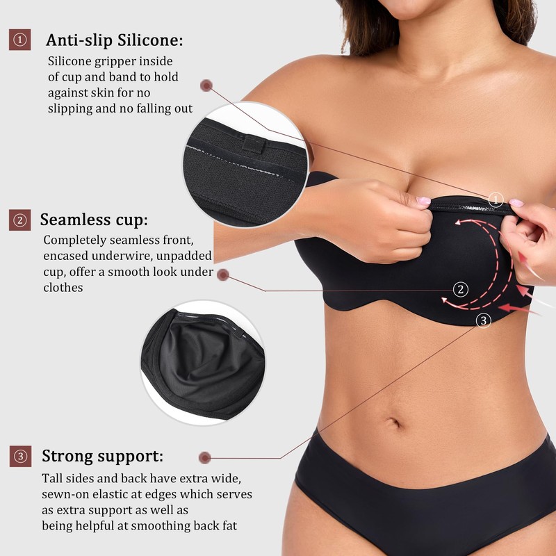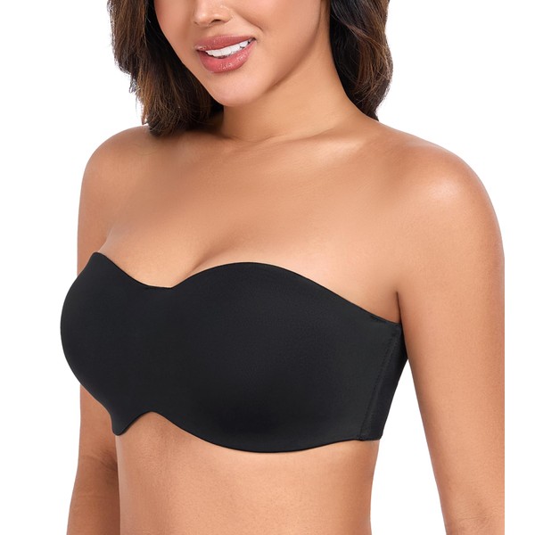 DotVol Women's Strapless Bandeau for Large Bust Unlined Seamless Underwire Minimizer Bras(Black,32DDD)