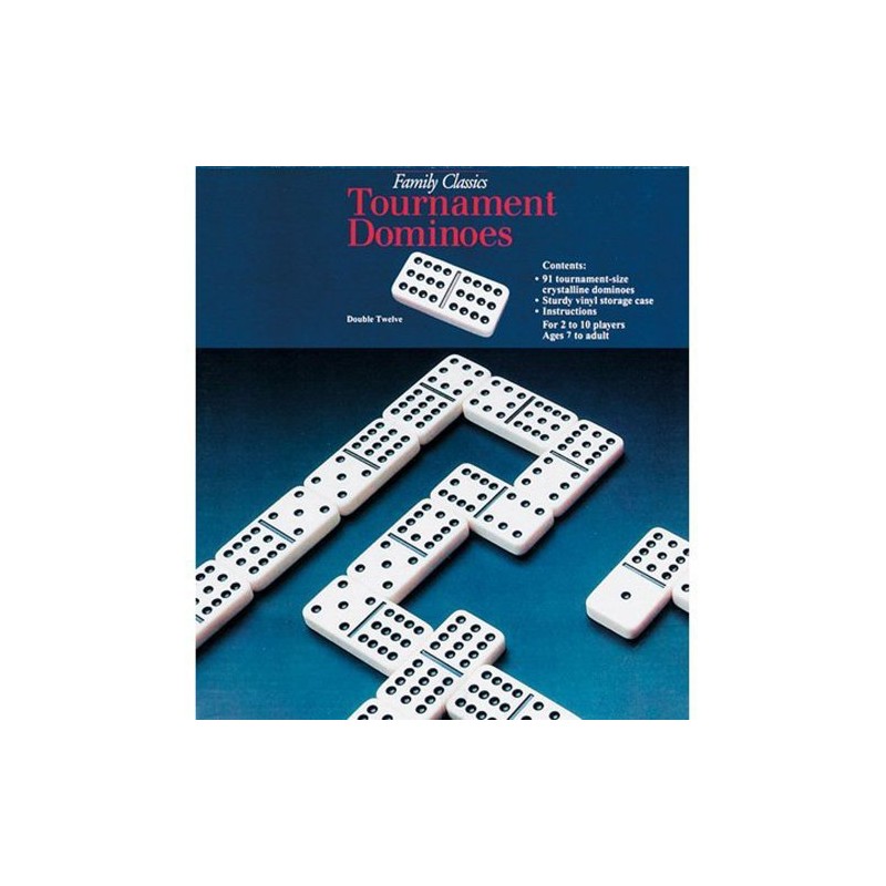 Double Twelve Dominoes: Family Classics Edition. Features 91 jumbo crystalline dominoes, vinyl case and rules. For 2 to 10 players, ages 7 to adult..
