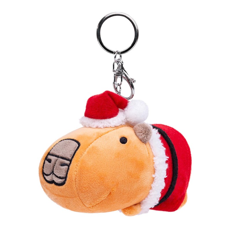 Double Bread Christmas Capybara Plush Keychain, Brown