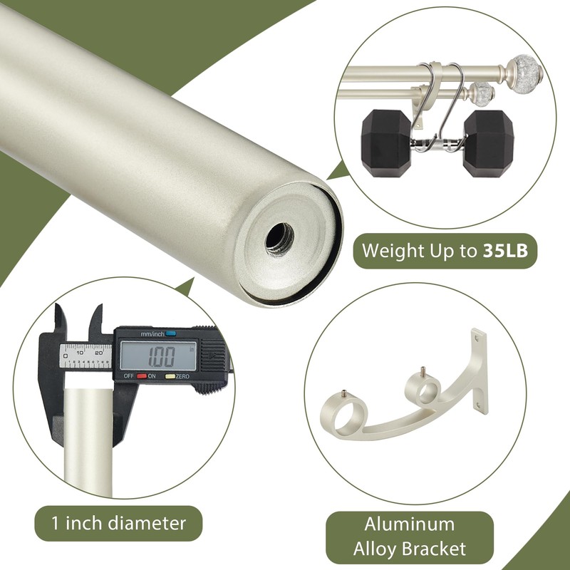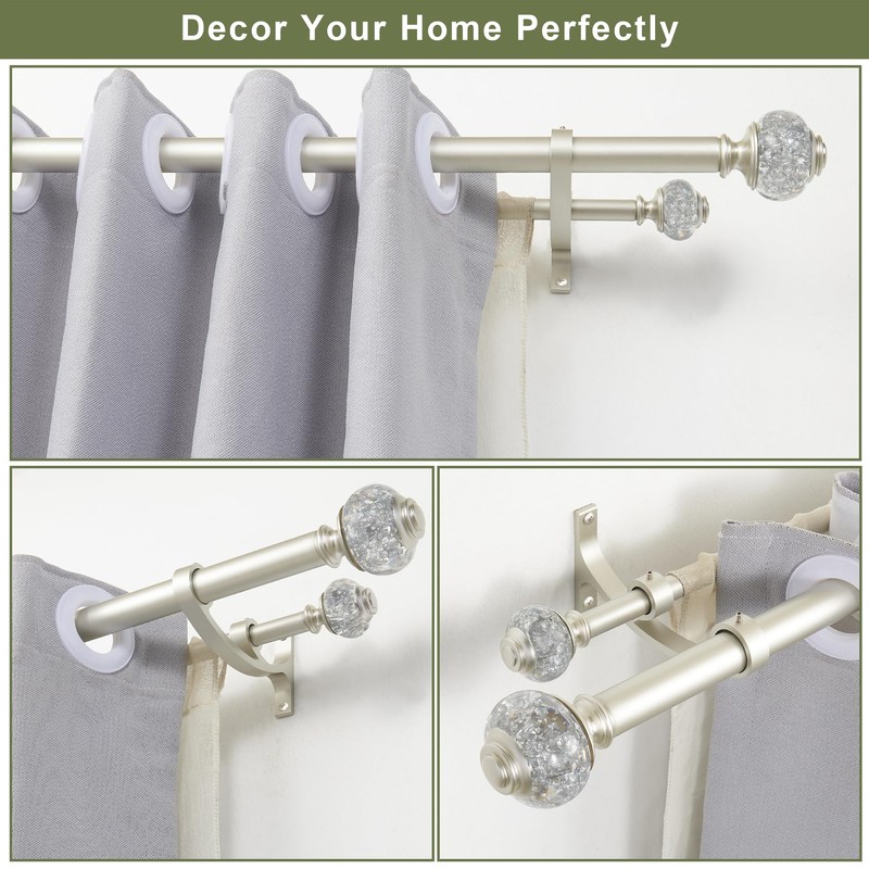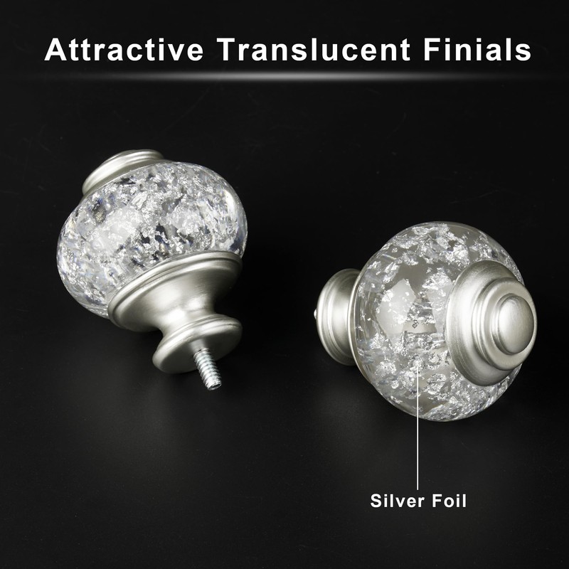 - Attractive Translucent Finials: The decorative translucent finials add a touch of elegance and sophistication that complements any decor style. They will make your house feel more “homey”, enhancing the overall look and feel of your living space. Double curtain rods design offers the flexibility in terms of hanging voile curtain and blackout curtain for both privacy protection and light control