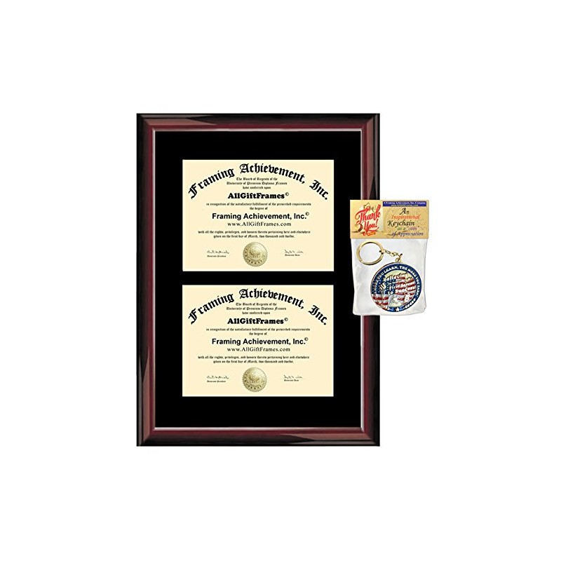Double Diploma Frame - Premium Wood Glossy Traditional Mahogany - Single Black Mat - Dual Certificate Frame