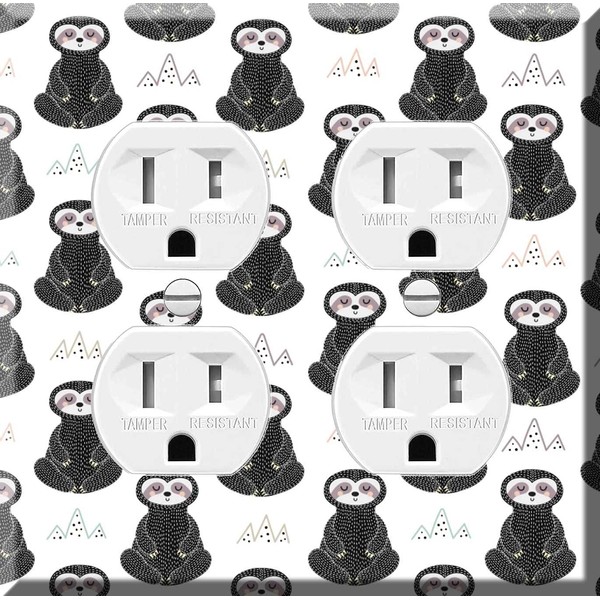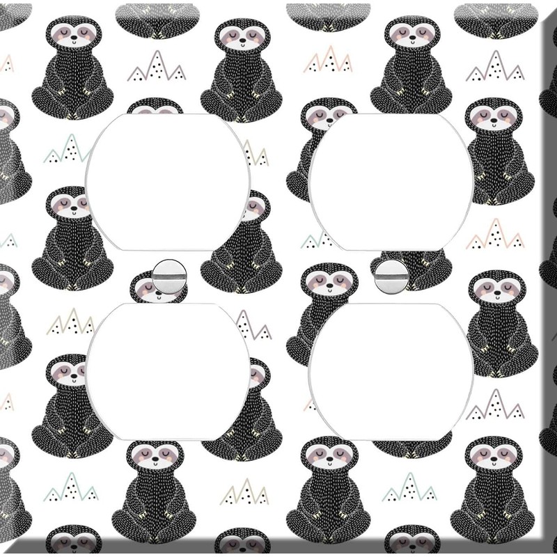 Double Duplex Outlet Cover Wall Plate - Cute Sloth Pattern