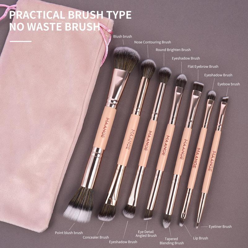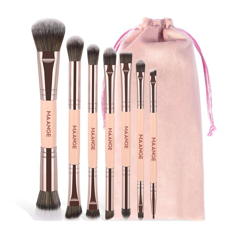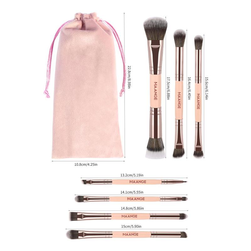 Double-ended Makeup Brush Set with Velour Storage Bag, 7 Counts/set Make Brushes for Foundation, Eyeshadow, Eyeliner, Highlighter, Contour