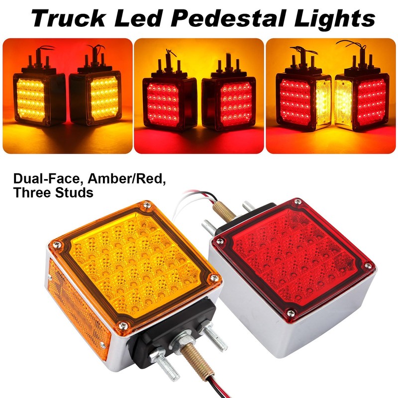 Double Face LED Turn Signal Lights, Square Dual Face Led Trailer Truck fender Pedestal Stop Turn Tail Brake lights Post Mount Replacement Red/Amber 52LED for Kenworth/Peterbilt/Freightliner 10V-30V