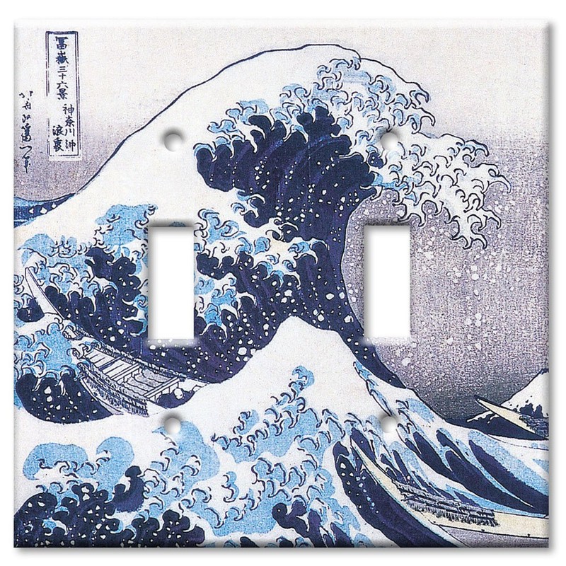 - Art Plates Brand Decorative Printed Double Gang Toggle Switch Plate - Hokusai: Great Wave