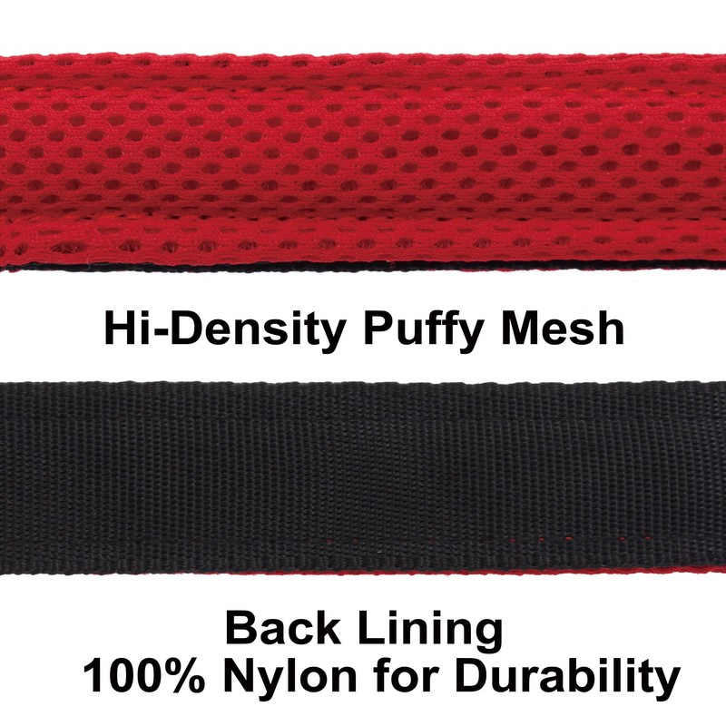 - DUAL LAYERED MESH FOR DURABILITY - The no pull dog body harness is composed of hi-density, dual layered air mesh fabric for higher tensile strength. A puffy padded feel to the comfy harness adds to your dog's comfort.